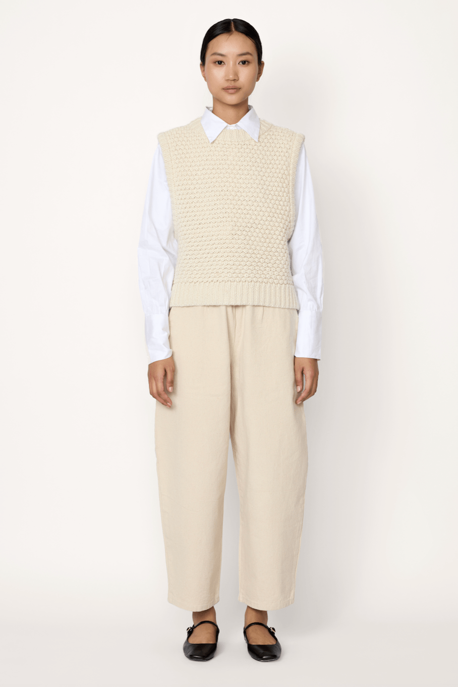 Classic and essential, the Sloane Vest is a special heirloom piece that elevates any wardrobe. Perfect for layering over crisp button-downs and dresses, and luxurious enough to wear on its own with your favorite jeans. Its timeless design and refined craftsmanship ensure it remains a go-to, versatile piece that you’ll cherish for years to come.