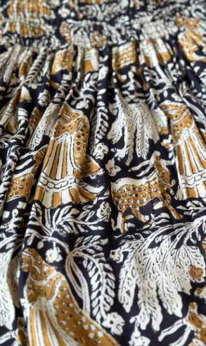 Emerson, E, is committed to making beautiful pieces in the most conscious way possible, limiting waste/overproduction and relying on ethical production and sustainable fabrics. She has two lines; one made in the USA and one made in India using traditional techniques and fair trade practices.